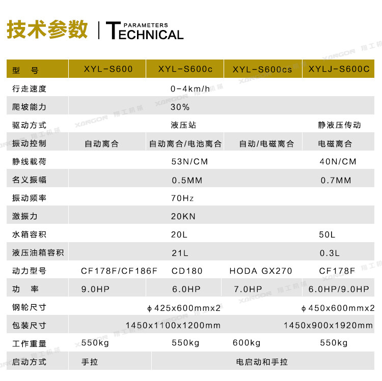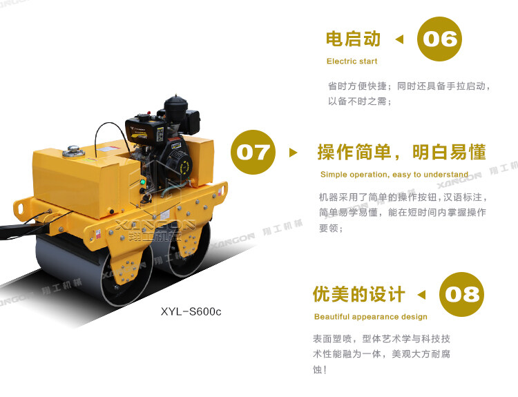 ·柴油動力采用電啟動,輕便靈活換向機(jī)構(gòu);雙驅(qū)雙振,保證了整體的壓實(shí)和爬坡能力;