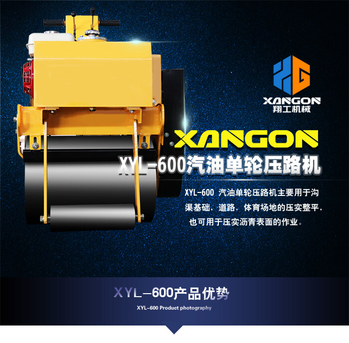 XYL-600 汽油單輪壓路機(jī)主要用于溝渠基礎(chǔ),道路,體育場(chǎng)地的壓實(shí)整平, 也可用于壓實(shí)瀝青表面的作業(yè)。