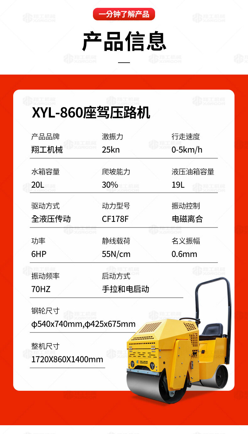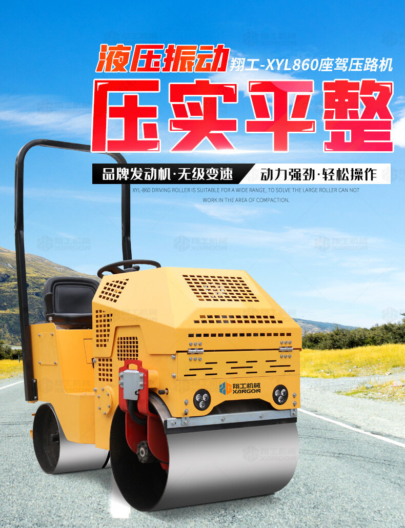 XYL-860座駕壓路機(jī)適用于各種溝槽沙土回填壓實(shí)、高層建筑地下室土方壓實(shí)、小區(qū)道路基礎(chǔ)壓實(shí)、各種草坪壓實(shí)、修補(bǔ)及各種小型工程的使用,解決了大型壓路機(jī)無(wú)法工作區(qū)域的壓實(shí)作業(yè)。