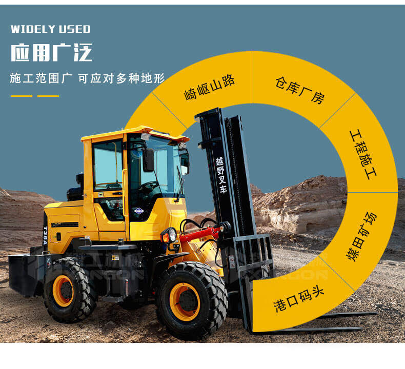 越野叉車適用于道路修筑、城市建設(shè)、環(huán)境衛(wèi)生、石料場、中小型土木工程、車站、碼頭、貨場、倉庫等地方,主要用來轉(zhuǎn)運石料、設(shè)備、貨物、城市垃圾箱以及集裝物料等。