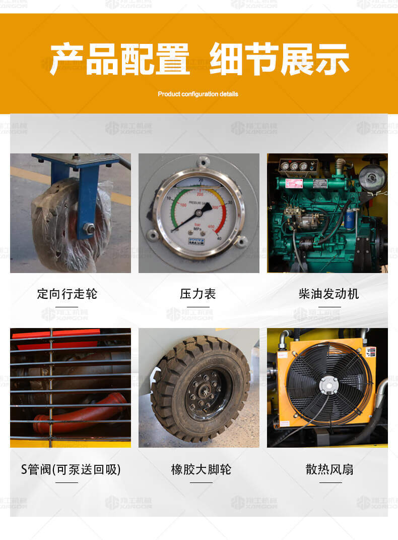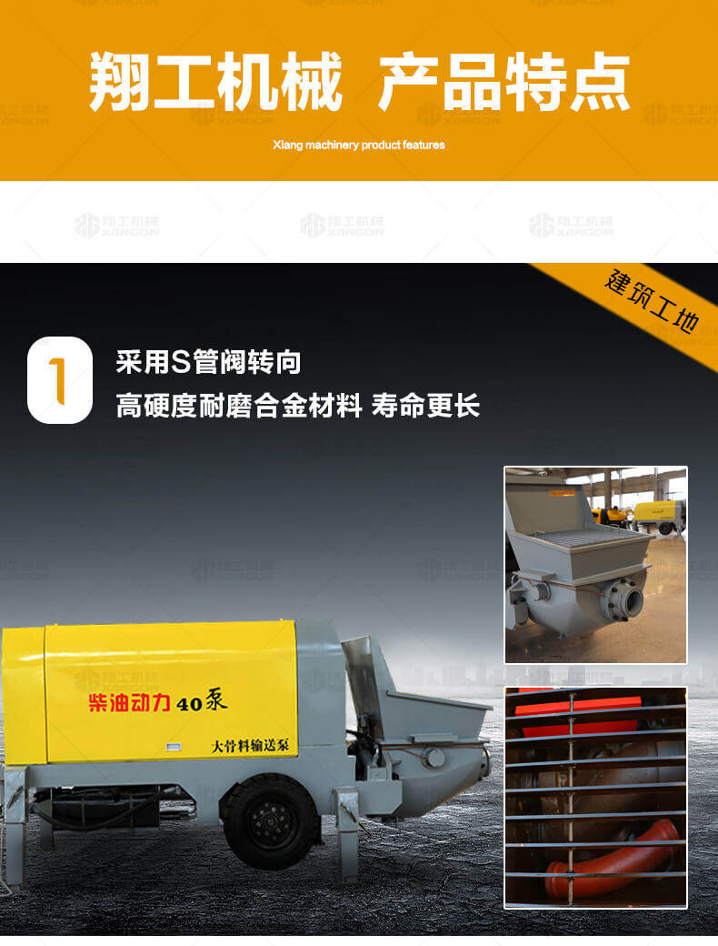 大骨料混凝土輸送泵主要用于坡道灌漿、水平地面、隧道澆筑。模板灌漿等。移動(dòng)便捷全部采用快接式管道卡,提高工作效率 。