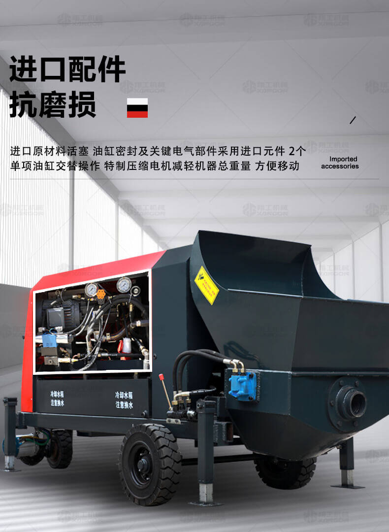 這款7.5KW型澆筑泵帶有自動(dòng)攪拌功能,性能可靠,設(shè)備各個(gè)結(jié)構(gòu)制造科學(xué),電機(jī)功率大、性能穩(wěn)定、施工效率高等優(yōu)勢(shì),使用電動(dòng)澆筑泵大大提高了施工效率,降低勞動(dòng)強(qiáng)度,節(jié)約人工,被廣泛應(yīng)用。是工程施工的好幫手。