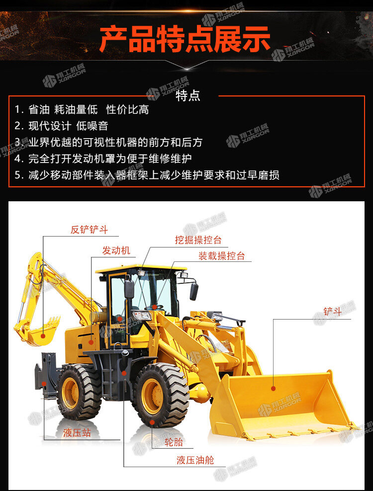 挖掘裝載機(jī)主要用于城市和農(nóng)村的公路建設(shè)及養(yǎng)護(hù)、電纜鋪設(shè)、電力和機(jī)場工程、市政建設(shè)、農(nóng)田水利建設(shè)、農(nóng)村住宅建設(shè)、開山取石以及各種小型建筑隊(duì)所從事的各種建筑施工工程。
